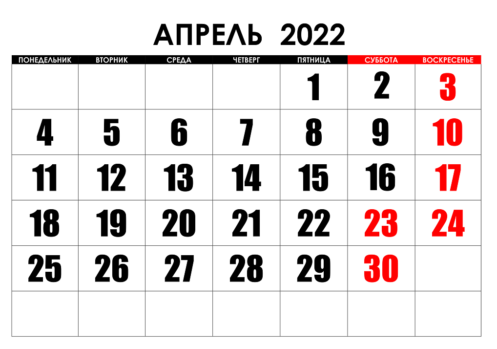 График работы Компании в апреле 2022 года