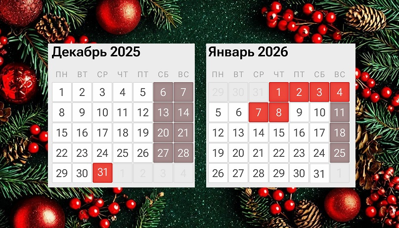 31 декабря + 1,2,3,4,7,8 января = у нас каникулы.