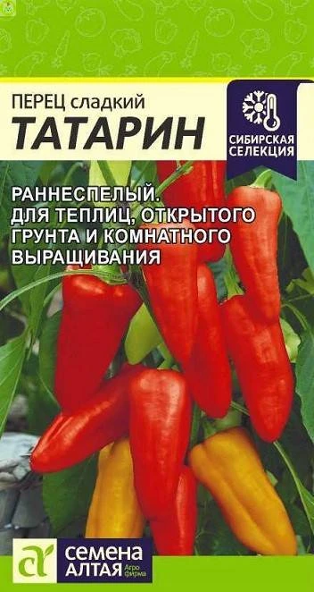 Раннеспелый (90 - 95 дней)! Куст компактный, высотой 40-50 см, не требует формирования. Плоды конусовидные, глянцевые, оранжево-красные в технической спелости и насыщенно-красные – в биологической, массой 100-180 г, отдельные плоды до 200 г, толщина стенки 5-7 мм. Сорт Перец Татарин от Семена Алтая отлично подходит для потребления в свежем виде, салатов и заморозки, имеет яркий вкус и аромат. Предпочитает солнечные участки с легкими плодородными нейтральными почвами.