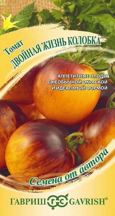 Среднеспелый томат ( 95-100 дней). Плоды правильной округлой формы, массой 100 г, в незрелом состоянии фиолетового цвета. С ярко выраженным фруктовым ароматом, нежной и очень вкусной мякотью, которые прекрасно подойдут для нарезки, салатов, цельноплодного консервирования и приготовления овощного ассорти. Томат Двойная жизнь колобка от Гавриш для теплиц и открытого грунта (в южных регионах) с удивительной окраской при созревании: одна половина плода эффектно-желтая с оранжевыми штрихами, а вторая — насыщенно-фиолетовая. Посев на рассаду — в начале марта. Пикировка — в фазе первого настоящего листа. Высадка рассады в теплицы — в мае в возрасте 50-55 дней. Сорт устойчив к возбудителям вируса табачной мозаики, кладоспориоза, фузариоза, вертициллеза. Семена сохраняют всхожесть в течение 10 лет при оптимальных условиях хранения. Рекомендуется увеличить норму высева по окончании срока годности.