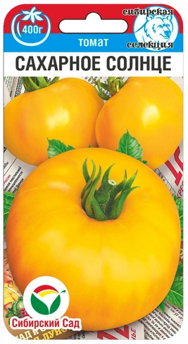 Ранний крупноплодный гибрид с радостными солнечно-желтыми плодами.Растение среднеоблиственное, высотой 130-150см. Первая кисть закладывается над 5-6 листом. Кисть простая с 5-6 плодами массой 200-220гр. Плоды Томата Сахарное солнце от Сибирского сада округлые, плотные, высокотранспортабельные, с прекрасными вкусовыми качествами.