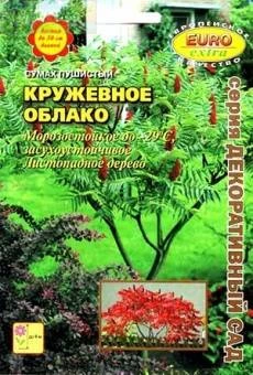 Двудомное дерево до 4 м высотой с ажурной кроной и толстыми, пушистыми побегами светло-бурого окраса. Очень крупные бархатистые листья до 50 см длиной состоят 11-31 листочка темно-зеленого окраса летом и оранжевого или бордового оттенков осенью. Мелкие цветки собраны в густые пирамидальные метелки до 20 см. Плоды представляют собой шаровидные костянки с красным щетинистым опушением и украшают растение до весеннего периода. Используется для одиночных и групповых посадок, озеленения каменистых горок и закрепления почв. Сумах Кружевное облако пушистый от Аэлита-светолюбив, предпочитает хорошо дренированные, умеренно влажные почвы. Перед посевом семена необходимо замочить в горячей воде на 2-3 часа, затем провести 2-месячную холодную стратификацию. В грунт высаживают однолетние растения. Дальнейший уход заключается в аккуратном рыхлении и подкормках. Поливать и укрывать на зиму следует только молодые растения.